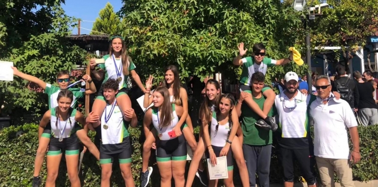 Ο Νίκος Μαλλιαρός και η Αρετή Καζάκη κατέκτησαν την 1η θέση και το χρυσό μετάλλιο στο αγώνισμα του διπλού μεικτού σκιφ αρχαρίων παίδων – κορασίδων.